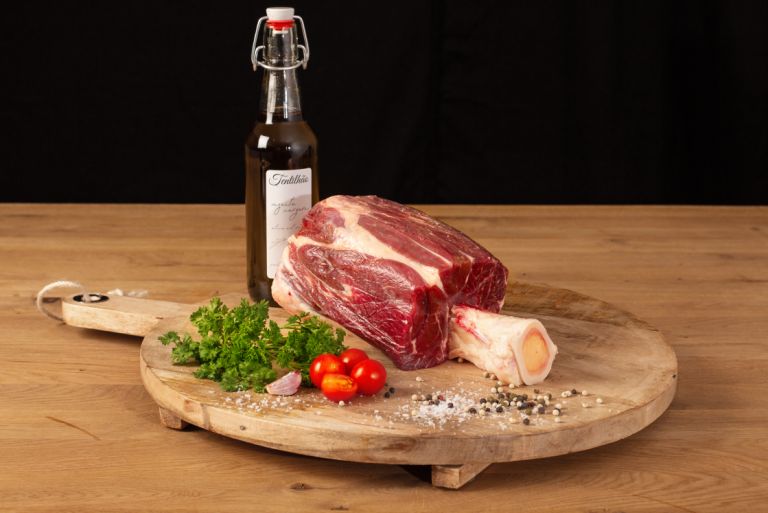 Het is perfect voor stoofgerechten of als spectaculair braadstuk. Het vlees bevat veel bindweefsel en heeft een hoog collageengehalte. Hierdoor is dit robuuste vlees uitermate geschikt voor slow cooking.