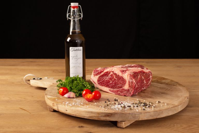 Dit vlees wordt gezien als een soort biefstuk, maar het vlees is gemarmerd met vet. Dit geeft het een rijke, volle smaak en zachte textuur. Ribeye wordt gesneden uit de rib van de koe en bevat geen bot.